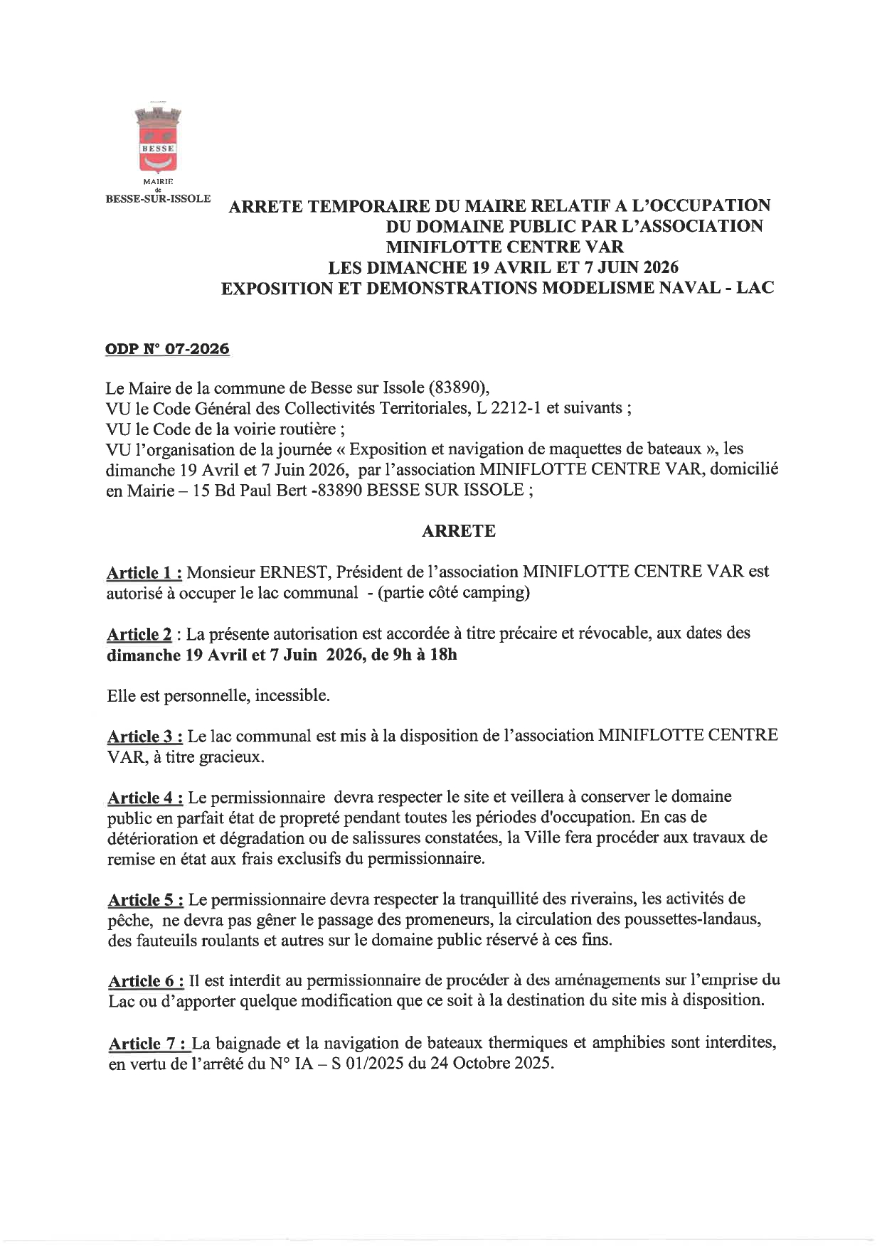 Le rapport, les conclusions et avis du commissaire enquêteur sont consultables à la mairie de Besse sur Issole aux jours et...